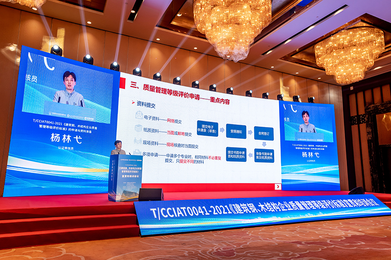 認證審核員楊林弋對建筑鋼、木結構企業質量管理等級評價流程、資料情況進行了介紹。