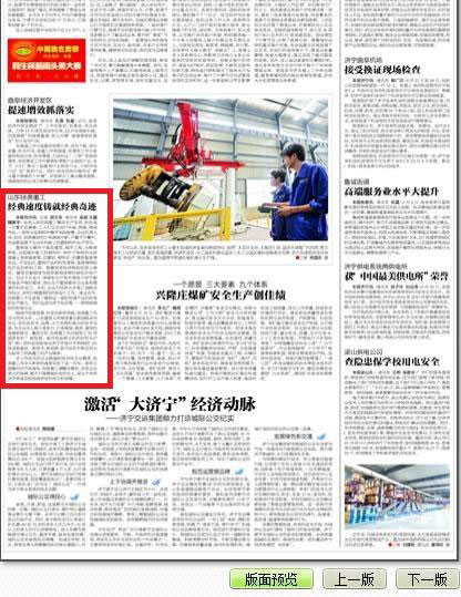 《濟寧日報》報道經典集團:經典速度鑄就經典傳奇