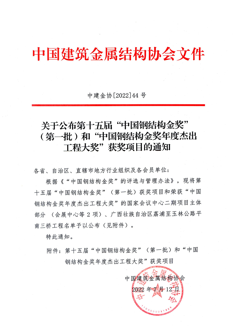 山東經典重工集團股份有限公司施工建設的軍隊某綜合保障項目77002工程榮獲“中國鋼結構金獎”。