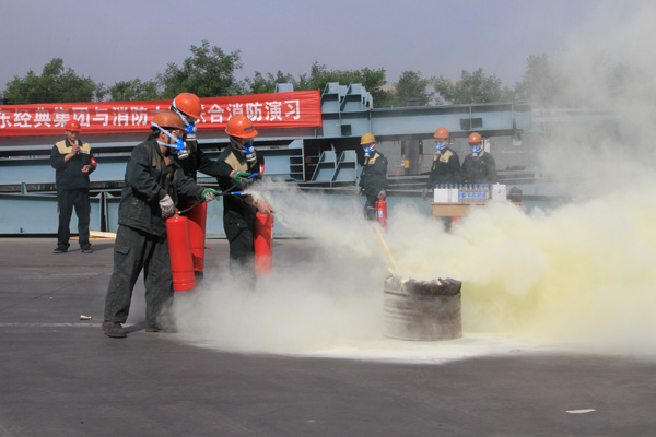 演習(xí)前,公司董事長苗樹文作了動員講話,對演習(xí)活動進行了部署。伴隨著消防警報響起,演習(xí)正式開始。消防應(yīng)急救援隊立即集合,全副武裝到達指定地點,完成疏導(dǎo)交通和消防警戒,建立了應(yīng)急通訊,集團領(lǐng)導(dǎo)下達救援命令后,一組救援人員手持干粉滅火器對準火源根部由近及遠進行掃射,迅速撲滅了火苗,二組救援人員使用高壓水槍對火源進行噴射,同樣達到了滅火的目的。演習(xí)結(jié)束后,區(qū)消防大隊趙怡然隊長對演習(xí)進行了指導(dǎo)點評。總經(jīng)理杜福生對消防演習(xí)進行了總結(jié),對消防安全工作提出具體要求。