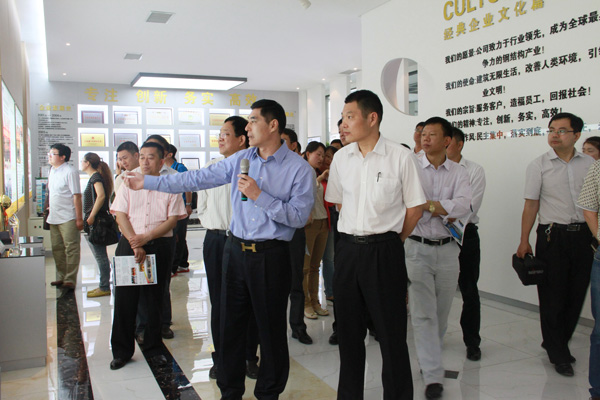 考察團一行參觀了經(jīng)典集團的文化館、項目中心、綜合辦公室、營銷中心和生產(chǎn)車間。苗樹文董事長向考察團介紹了經(jīng)典集團的生產(chǎn)經(jīng)營、項目建設、產(chǎn)學研合作、技術創(chuàng)新等情況。隨后,考察團一行實地參觀了經(jīng)典集團職工培訓室、閱覽室、乒乓球室、臺球室、愛心超市和宴會廳,進一步了解了企業(yè)的文化建設有關情況。