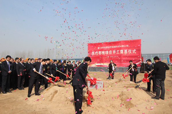 開工奠基儀式由新兗鎮黨委書記張建芬主持。苗董事長介紹了高端醫療器械項目情況。區經濟和信息化局局長、醫藥產業園建設指揮部副指揮韓春恒致了賀詞。隨后出席儀式的領導和嘉賓共同為高端醫療項目開工剪彩、培土奠基。