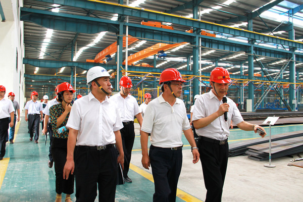 隨后,考察團一行來到職工餐廳和全市最大一體化生產車間實地考察,苗董事長向考察團介紹了企業生產經營、人性化管理等有關情況。經典集團堅持以人為本,把員工放在發展的第一位,積極弘揚 “經典事業 愛心傳承”的企業文化。集團重視車間一線工人的生產安全,定期對車間員工進行安全培訓,一線工人有了安全保障。集團啟用智能化辦公大廈,營造了優越的工作環境,秉承員工和企業共同發展的理念,為員工提供了紅木家具等辦公設施,免費為全體員工提供高標準的早餐和午餐,真正做到把集團員工的切身利益放到首要位置