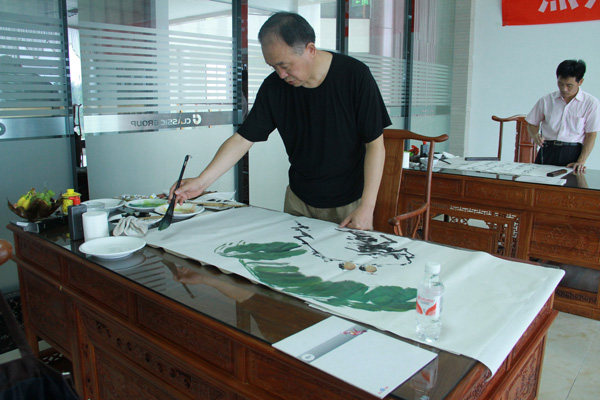 東美術家協會會員,兗州市美術家,書法家,攝影家協會主席李寶亮兗州市書法家協會副主席何愛民10多位書畫家,齊聚一堂,揮毫潑墨,進行了書畫表演和精心創作書畫大師們共展出70幅精品力作作品藝術形式多樣、內容取材各異,具有較高的藝術水平。 這次書畫聯誼筆會給集團公司留下了不可多得書畫墨寶,將由經典集團公司永久珍藏。