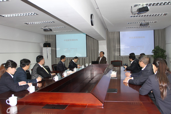 寶鋼集團賀總在會議室講解中國鋼結(jié)構(gòu)行業(yè)相關(guān)專業(yè)知識