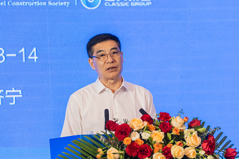 中國(guó)鋼結(jié)構(gòu)協(xié)會(huì)副會(huì)長(zhǎng)、山東省鋼結(jié)構(gòu)行業(yè)協(xié)會(huì)副會(huì)長(zhǎng)、山東經(jīng)典重工集團(tuán)股份有限公司董事會(huì)主席苗樹(shù)文致辭