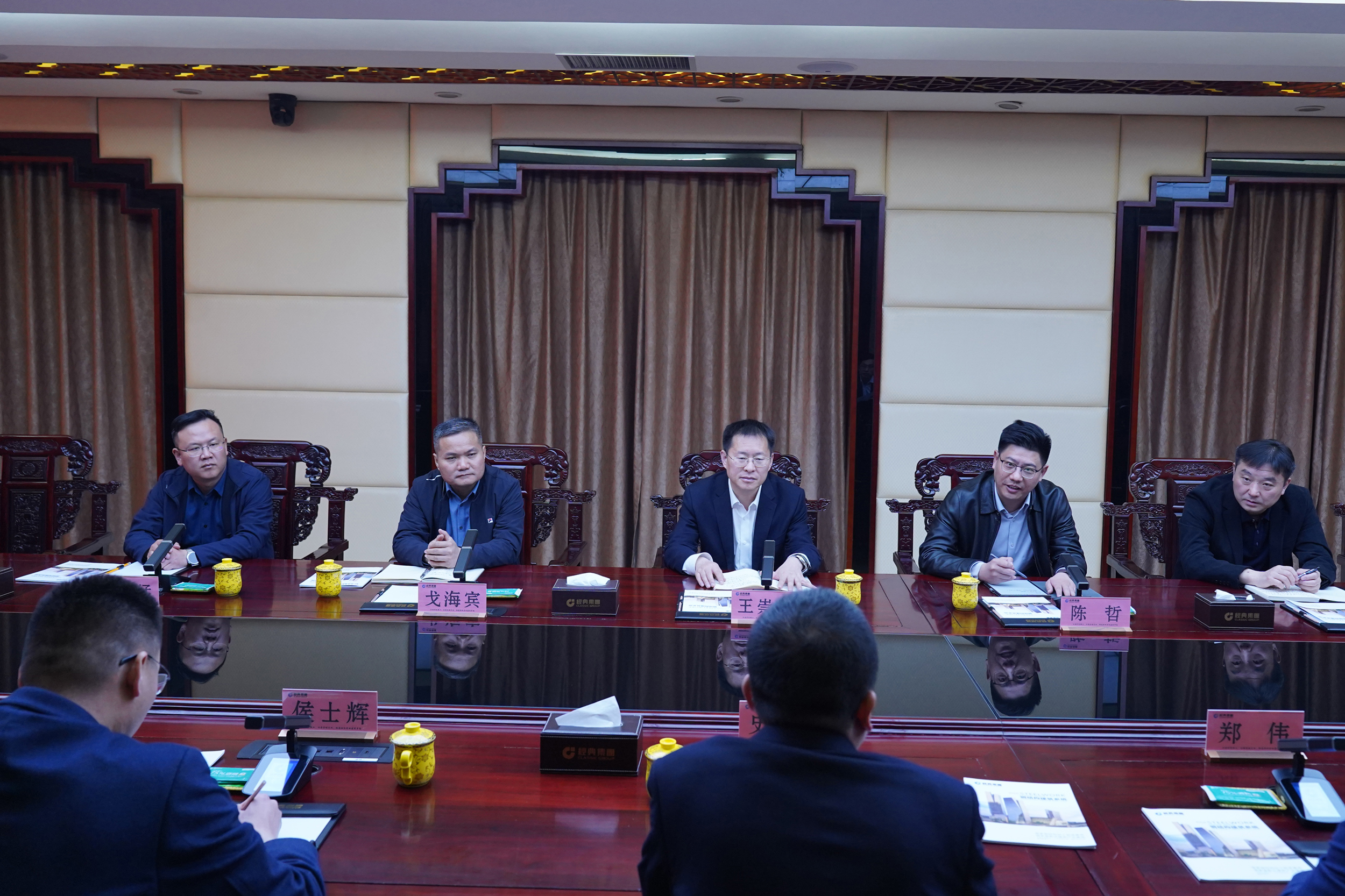隨后召開合作洽談會。王崇景總經理介紹了濟寧能源發展集團實施“一體兩翼、雙輪驅動+園區經濟”戰略,加快構建“12326”產業矩陣,發展新能源、港航物流、高端制造、大宗商品貿易等業務有關情況,并對經典集團發揮產業鏈優勢,創新發展模式,建設精品工程,打造產業集群給予了高度評價。