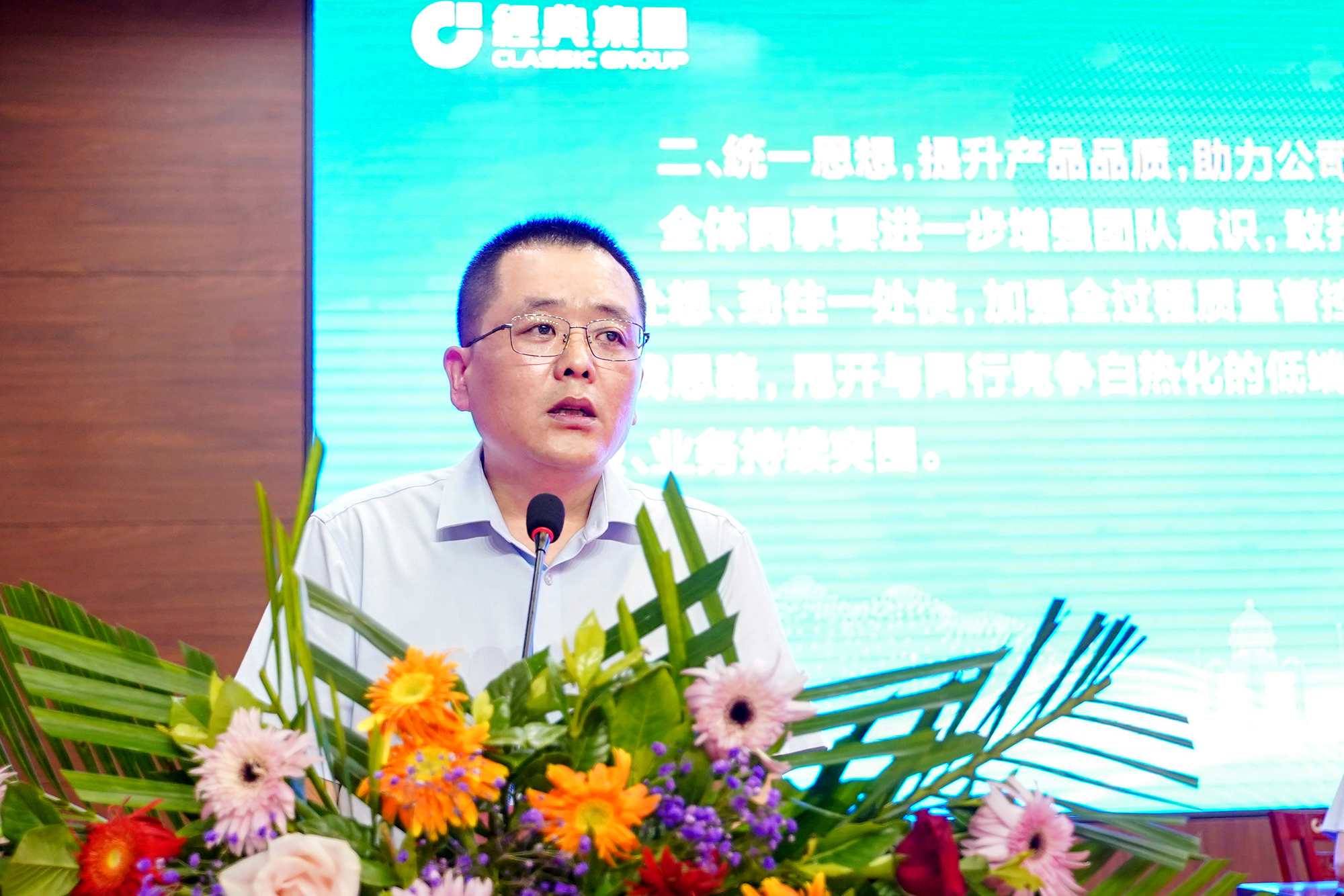8月22日上午,經典集團2025年上半年生產系統總結表彰大會圓滿舉行,奏響了高質量發展的新篇章。會議系統總結了上半年的生產經營成果,精準謀劃了下半年的決勝藍圖。戰鼓擂響,號角催征!大會號召全體職工堅定信念、凝心聚力、扛起使命、破浪前行,以決勝之姿和實干之風,力促全年目標圓滿達成。